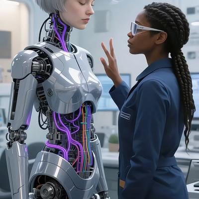 救援机器人在洪水灾区,转移被困群众至安全区域。